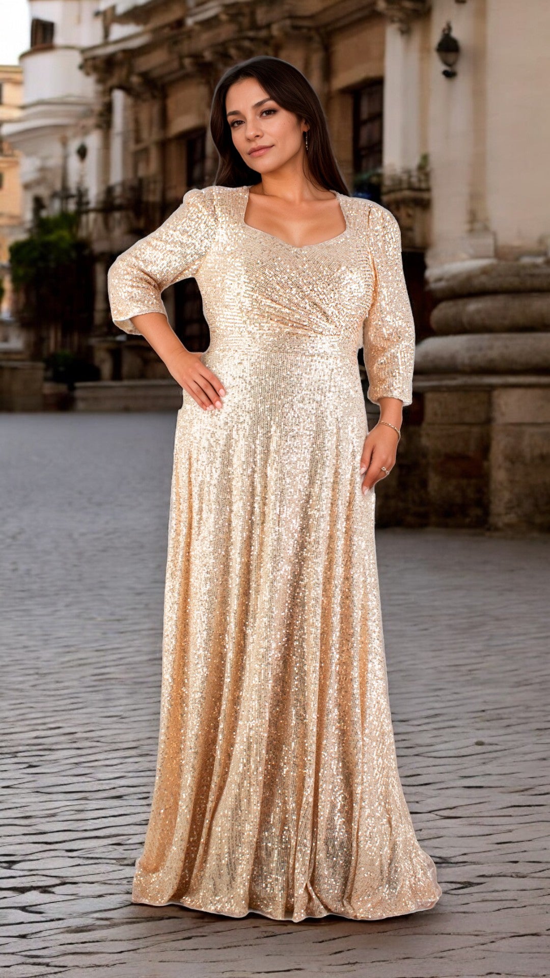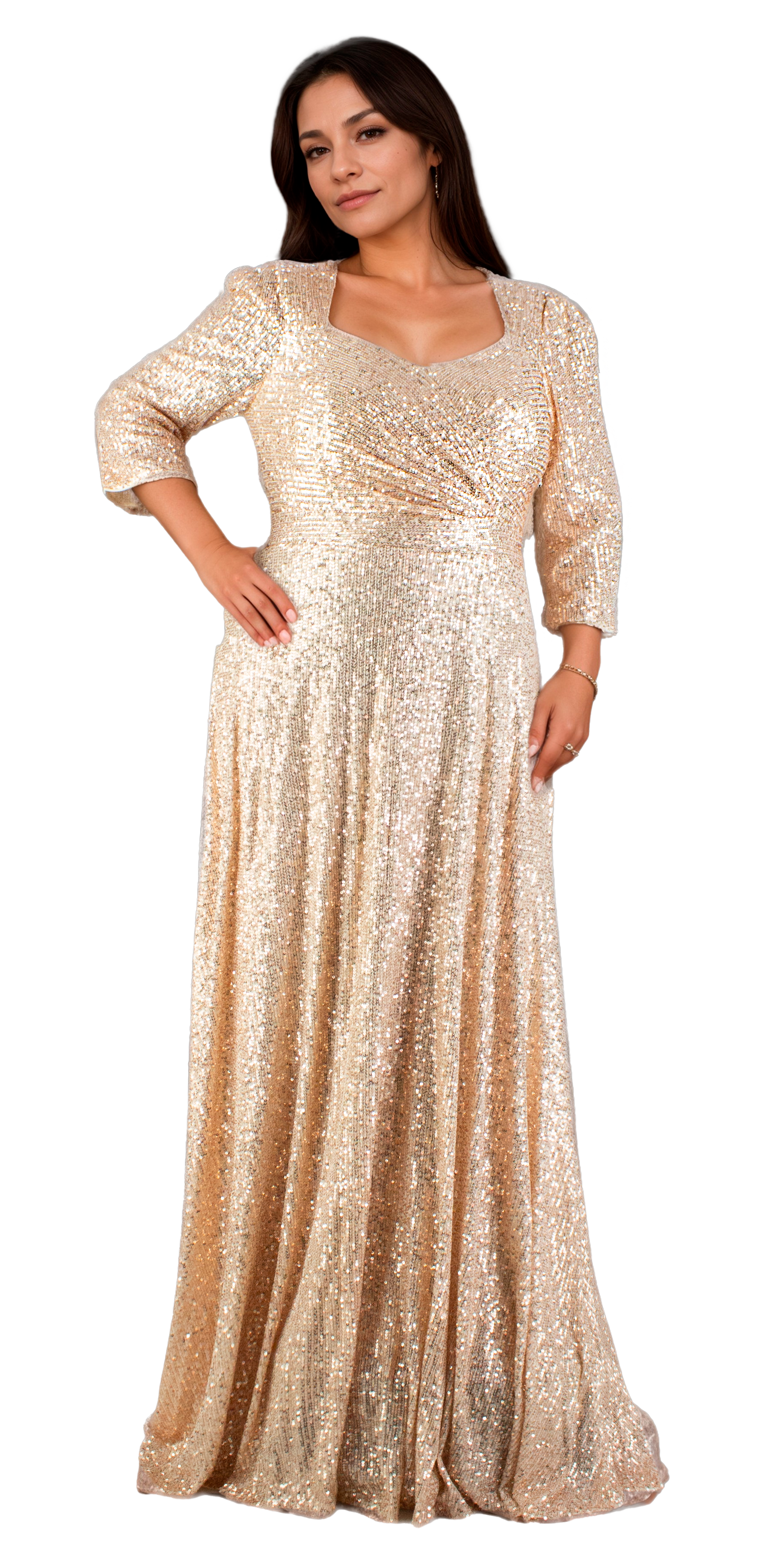 Este vestido largo destaca por su elegante diseño con manga 3/4 y un favorecedor escote de corazón que aporta sofisticación. La espalda cubierta ofrece comodidad y un acabado pulido, mientras que la falda en línea A garantiza una caída fluida y un movimiento natural. Con su forro interior, proporciona un ajuste cómodo y una apariencia impecable, ideal para eventos formales donde se busca combinar estilo y comodidad.