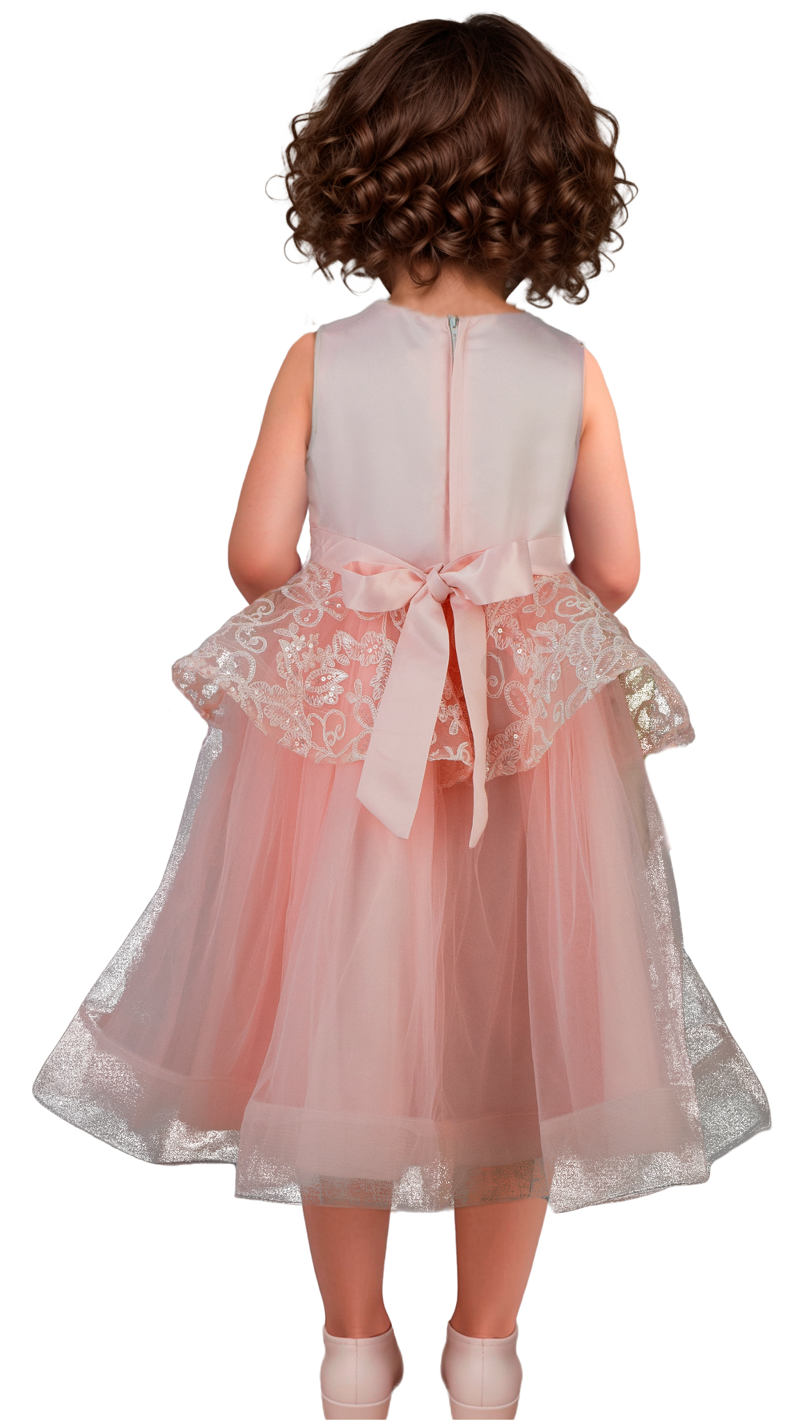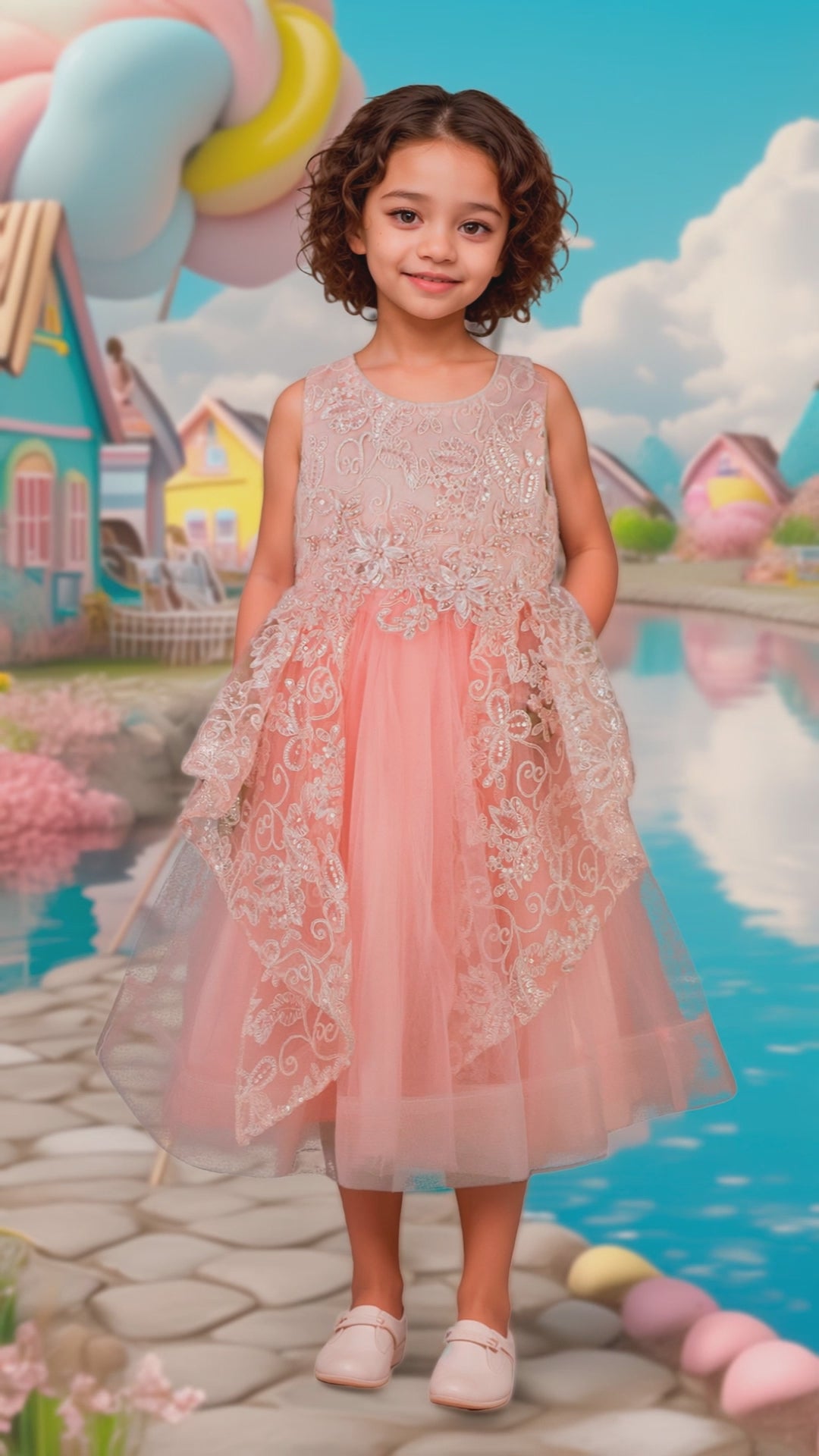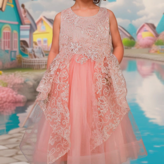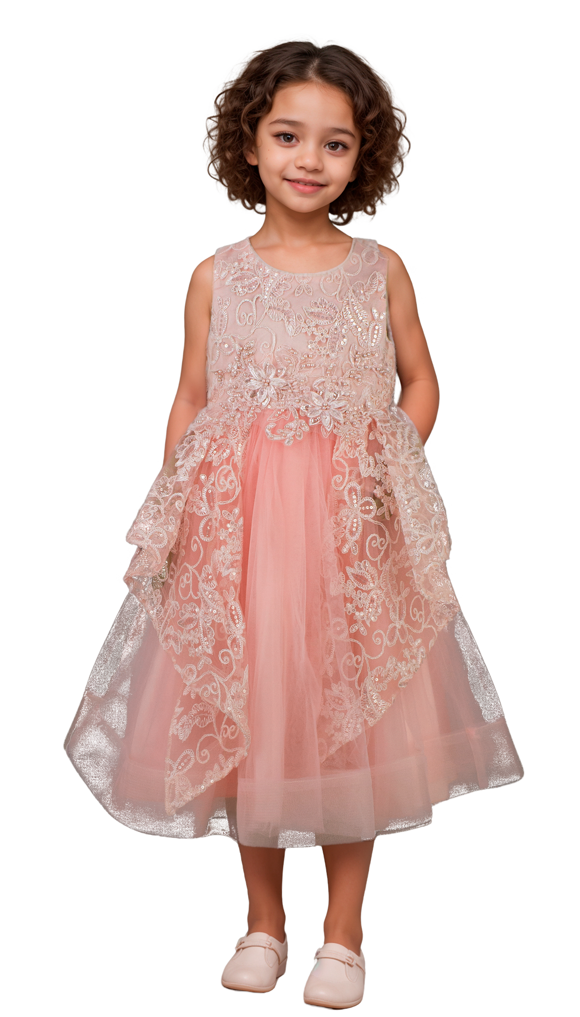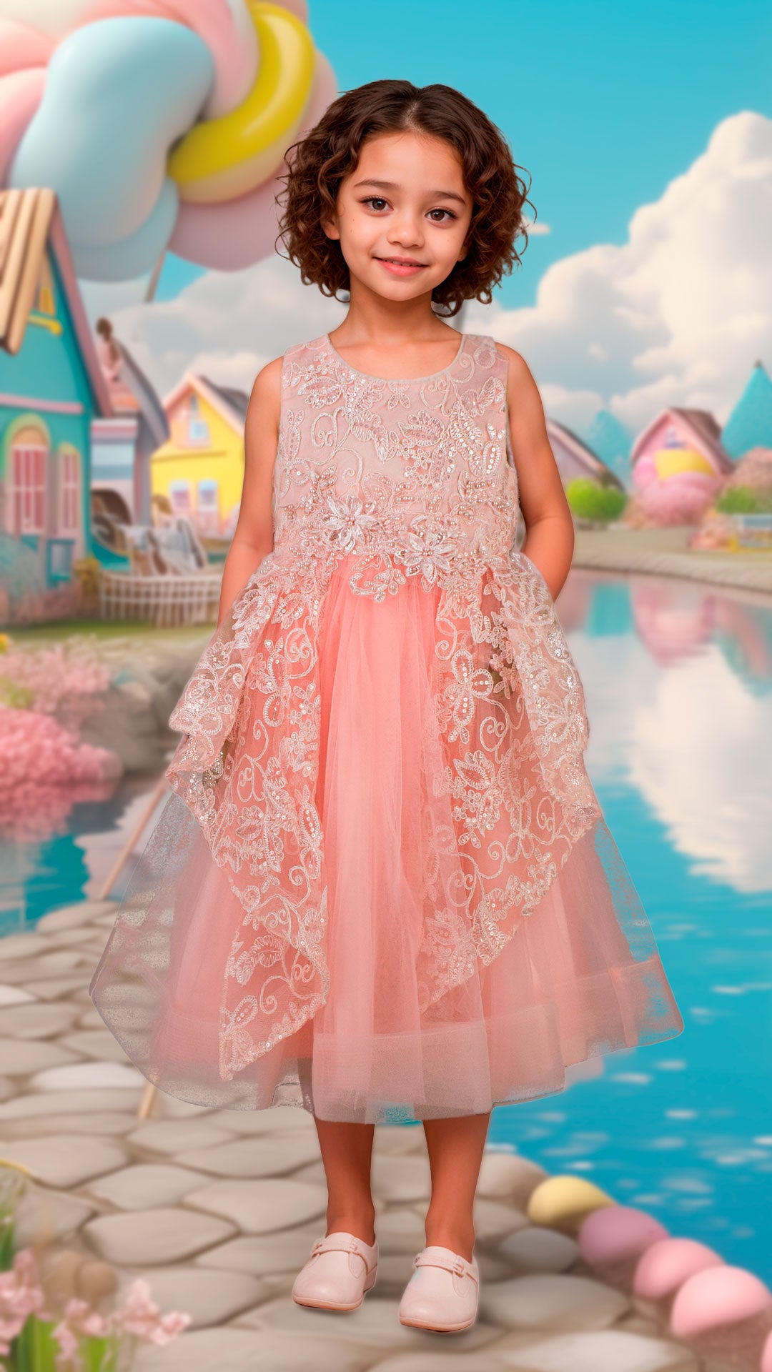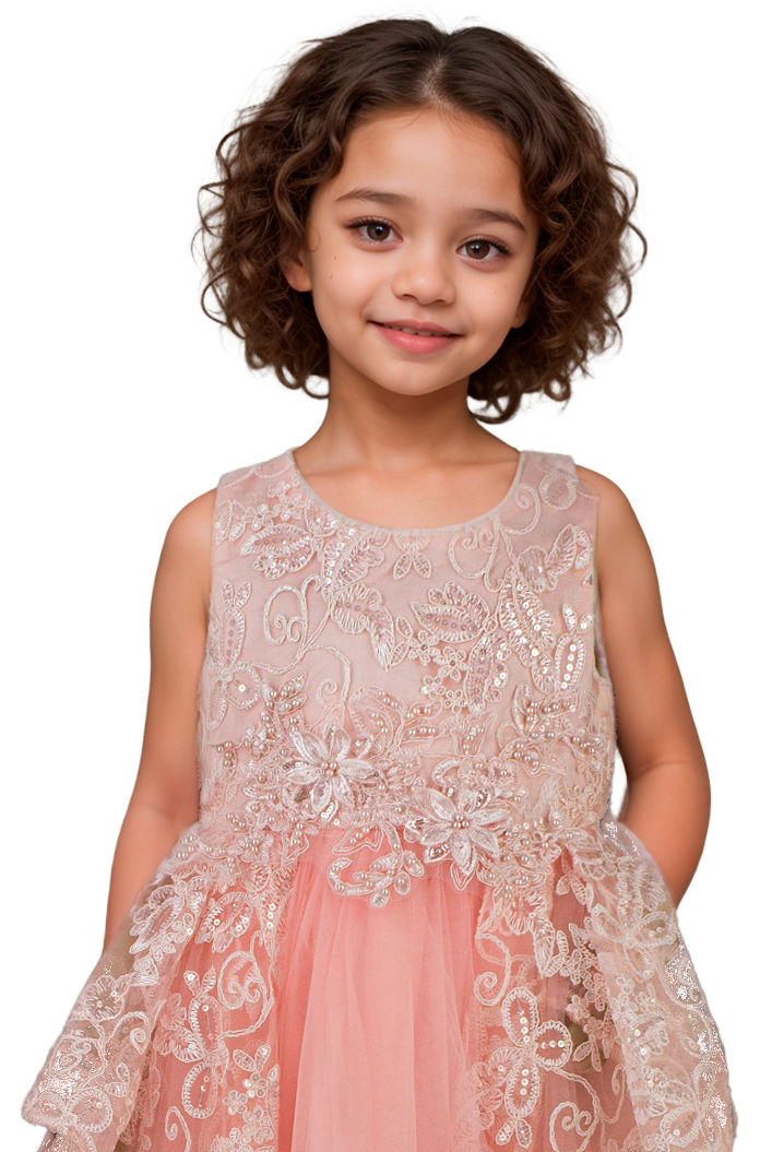 Este vestido para niña combina delicadas aplicaciones bordadas en el pecho con detalles de encaje, aportando un toque elegante y divertido. Ideal para ocasiones especiales, ofrece comodidad y estilo a la vez, asegurando que tu pequeña luzca impecable sin sacrificar movilidad. Su diseño cuidado resalta la belleza y la sutileza en cada detalle.