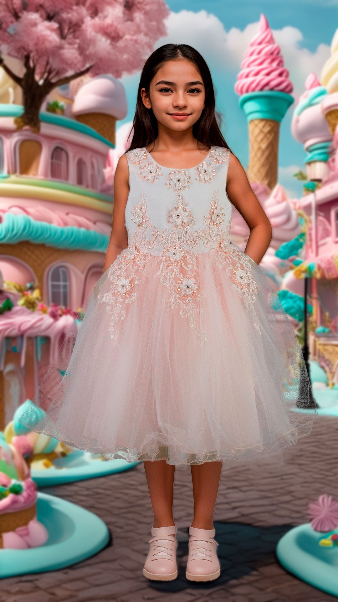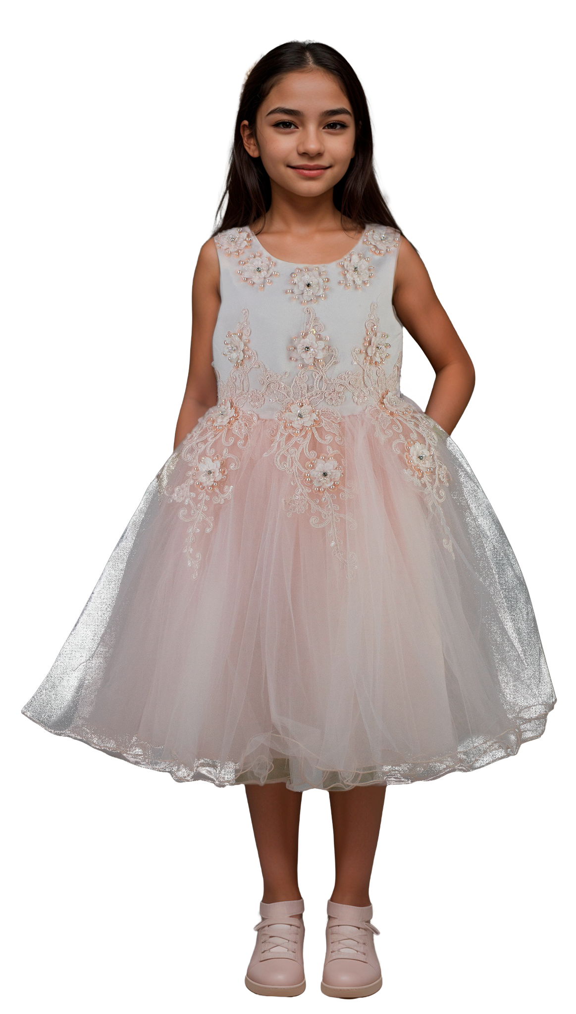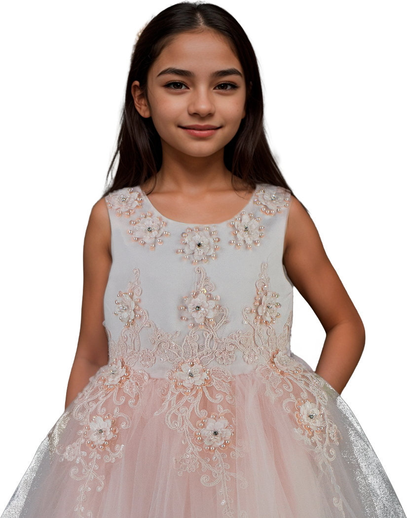 Este vestido corto para niña en tono blush combina delicadeza y estilo con aplicaciones bordadas en el pecho, aportando un detalle sofisticado y encantador. Ideal para ocasiones especiales, su diseño permite comodidad y libertad de movimiento, asegurando que las pequeñas luzcan elegantes sin sacrificar confort.