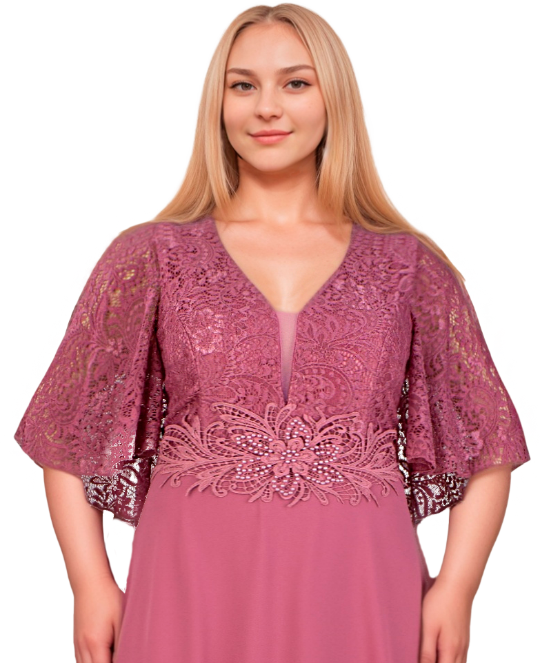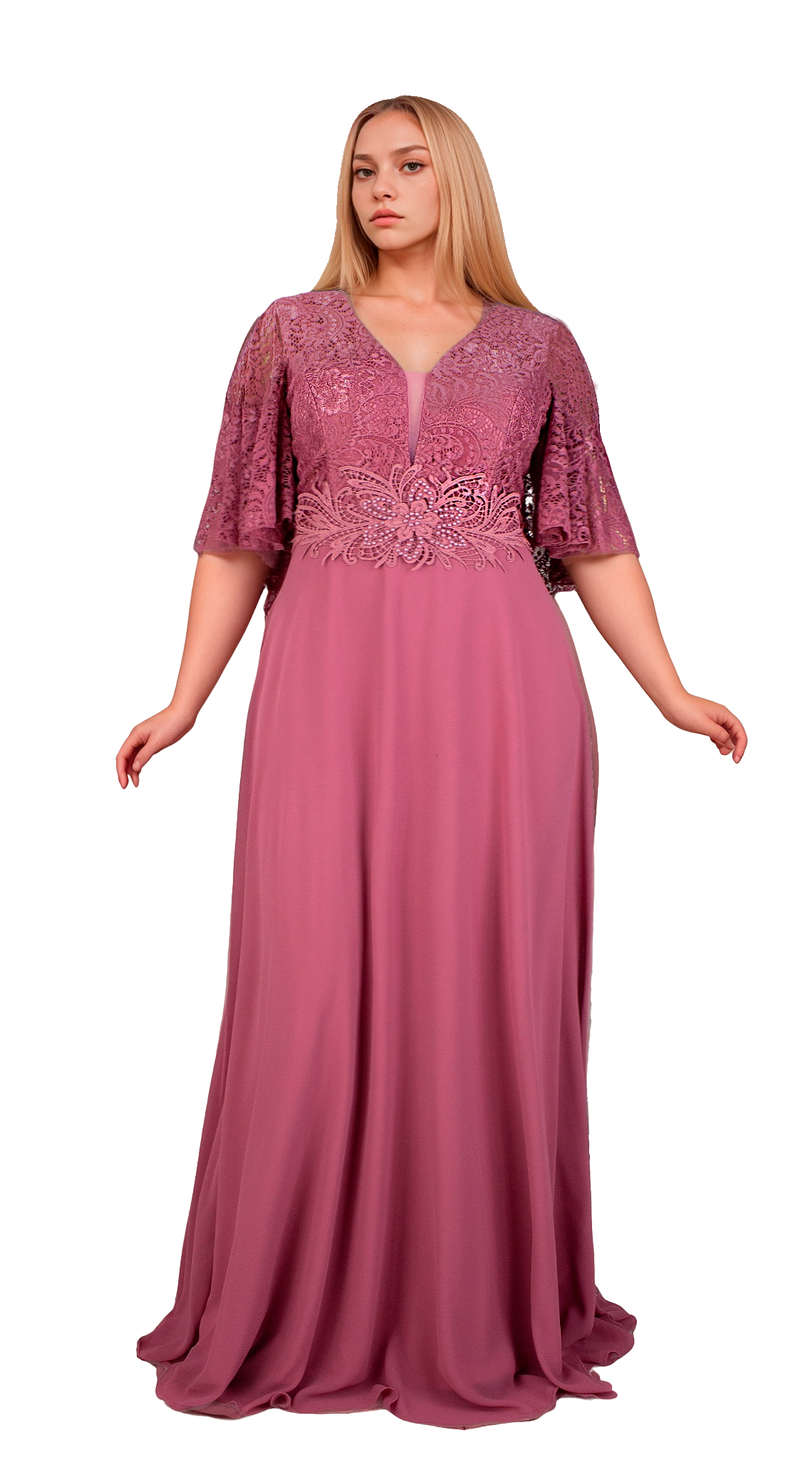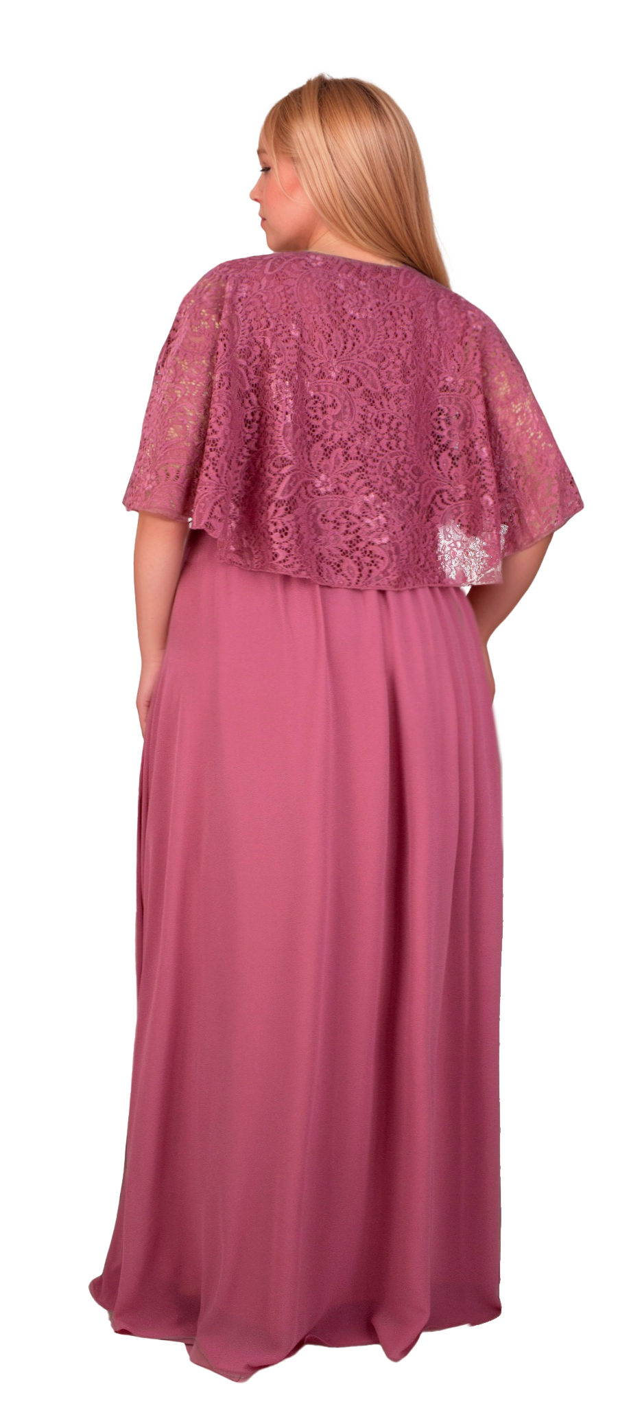 Este vestido rosa talla extra presenta una elegante capa de encaje y una aplicación detallada en la cintura que realza la figura. Confeccionado en suave tela chiffon, ofrece una caída fluida y un movimiento natural, ideal para ocasiones especiales donde se busca comodidad y estilo refinado.