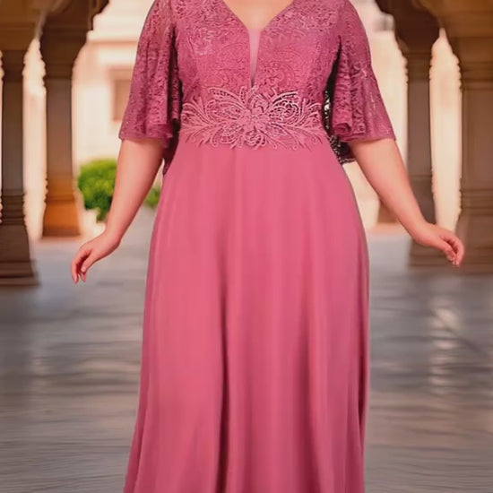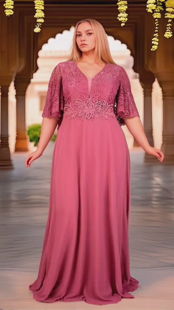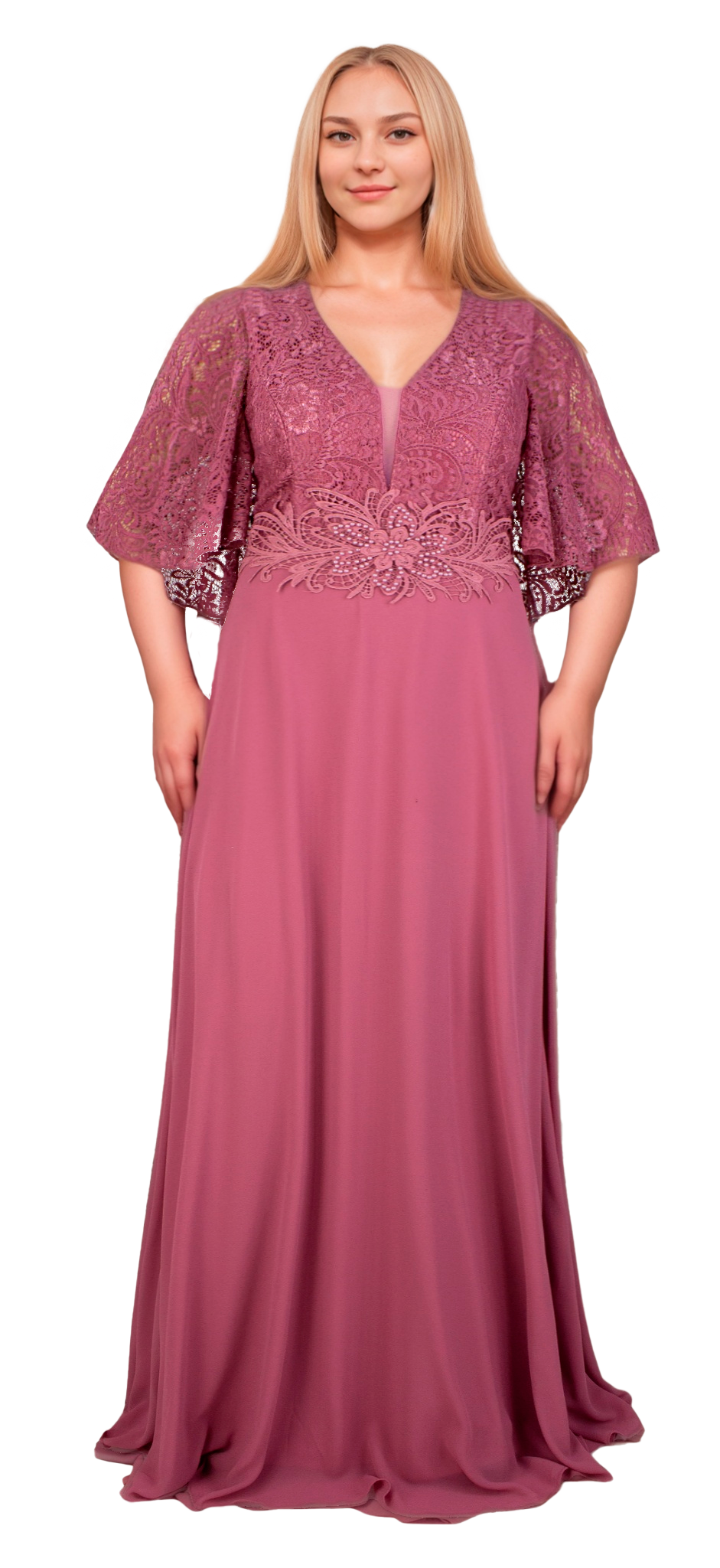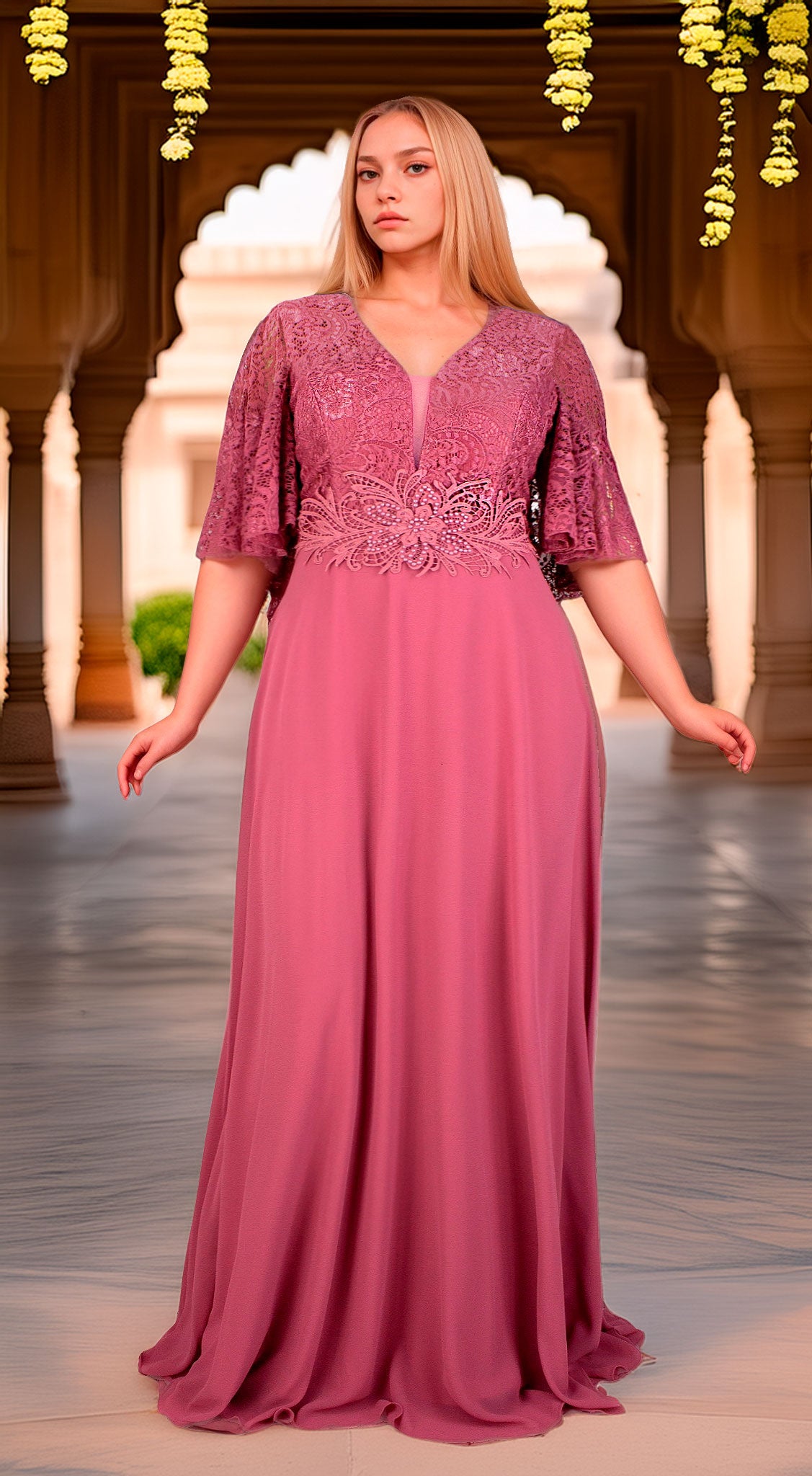 Este vestido rosa talla extra presenta una elegante capa de encaje y una aplicación detallada en la cintura que realza la figura. Confeccionado en suave tela chiffon, ofrece una caída fluida y un movimiento natural, ideal para ocasiones especiales donde se busca comodidad y estilo refinado.
