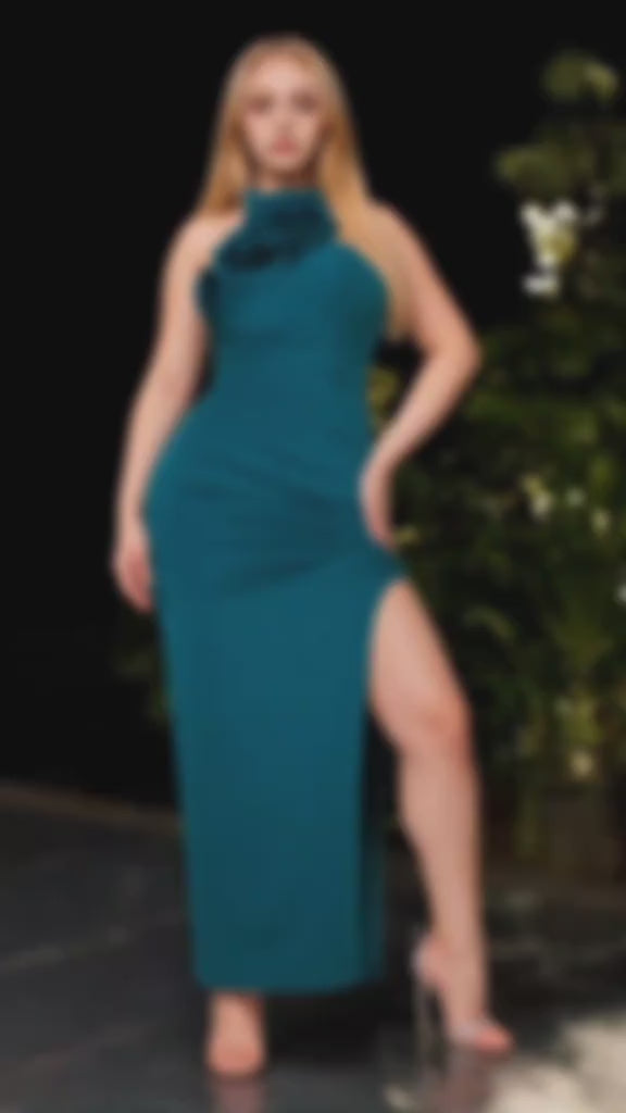 Este vestido halter destaca por su diseño elegante y femenino. Su espalda descubierta aporta un toque sensual, mientras que el drapeado frontal realza la figura con sofisticación. La abertura en la pierna ofrece comodidad y libertad de movimiento, ideal para ocasiones especiales donde se busca un equilibrio entre estilo y comodidad. Perfecto para quienes valoran un look refinado y moderno.