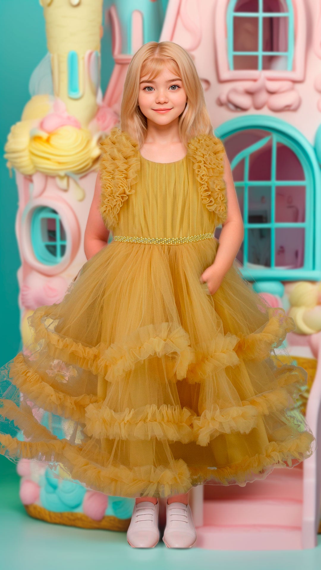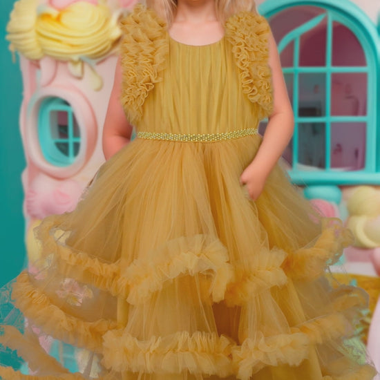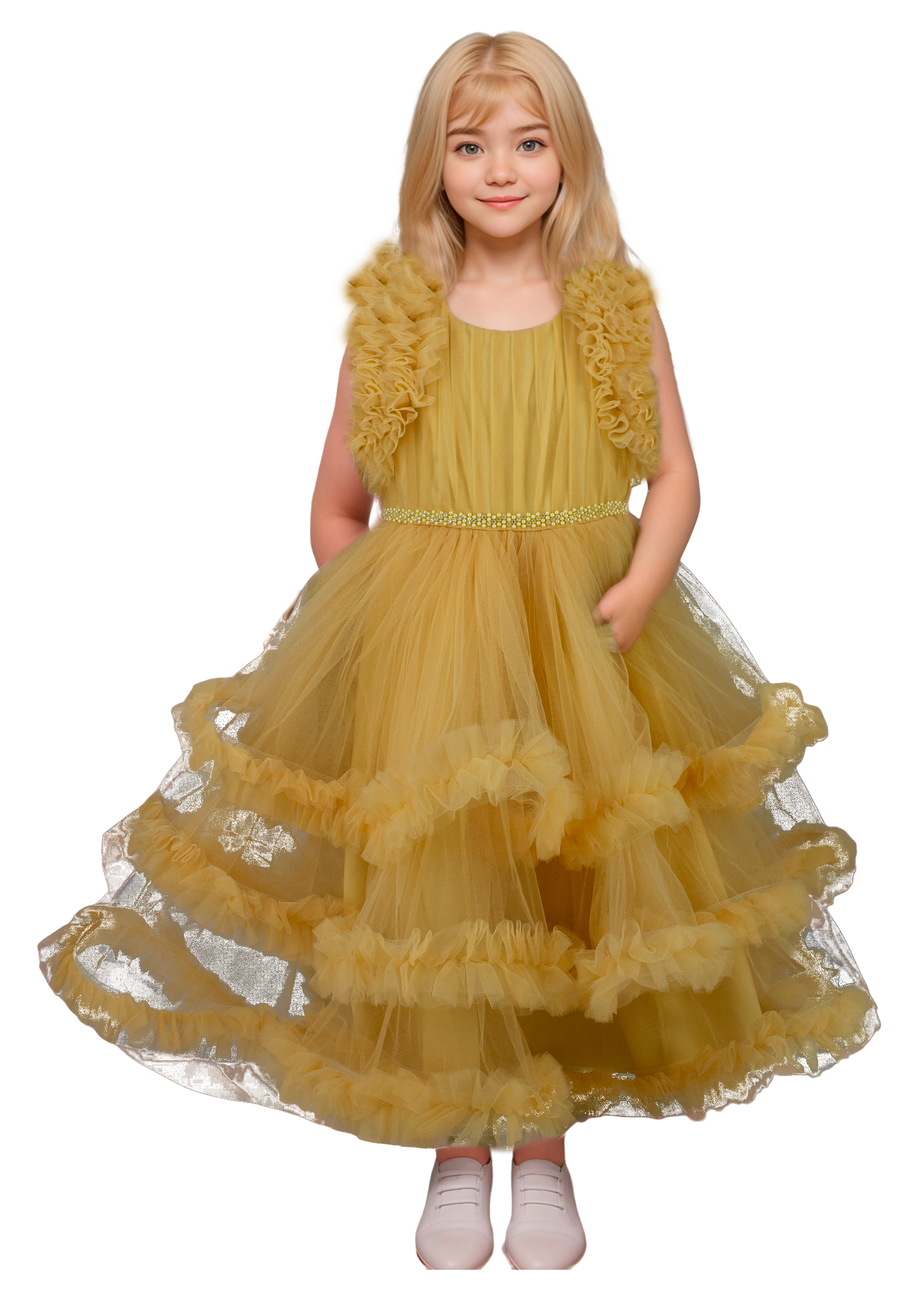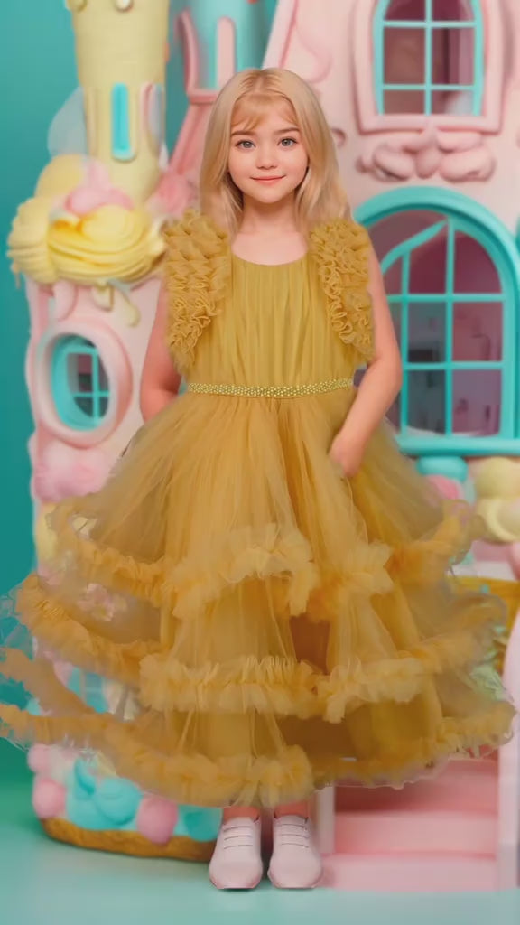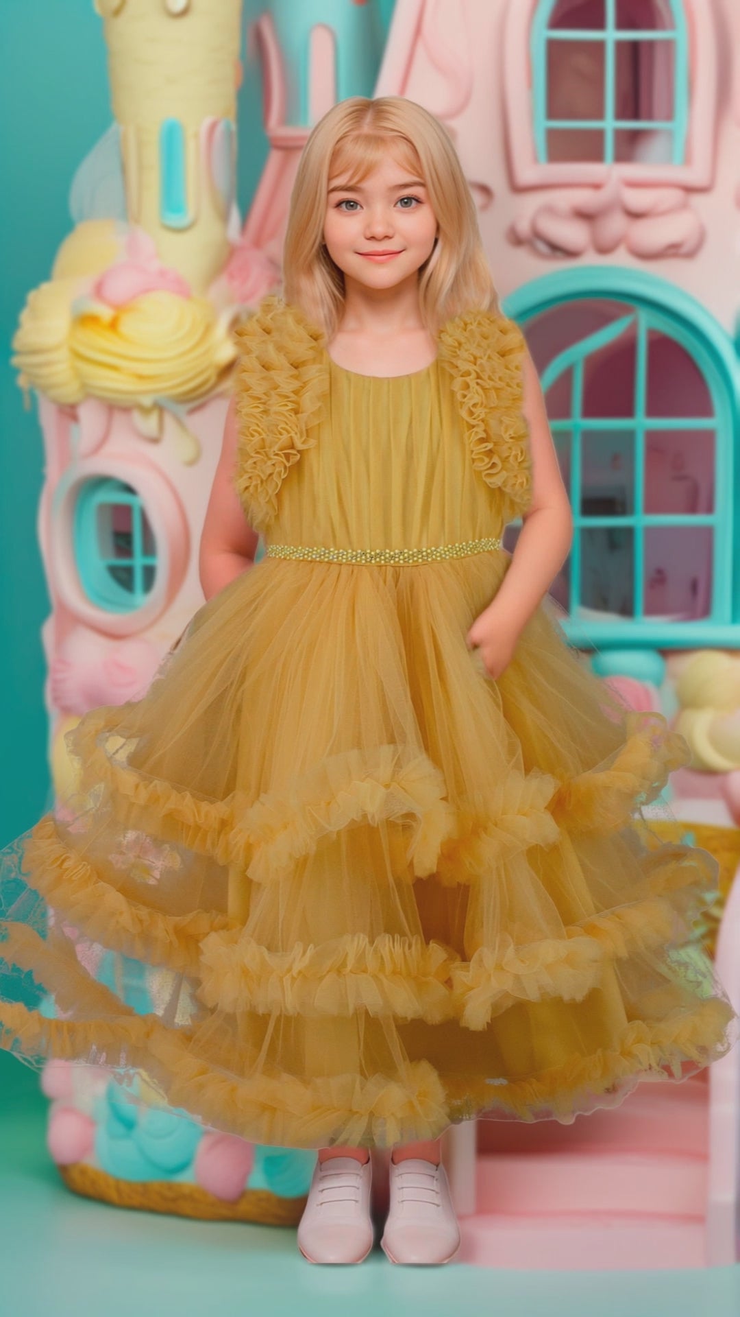 Este elegante vestido amarillo de tul para niñas combina delicadeza y estilo, con aplicaciones detalladas en la cintura que realzan su diseño. Su falda pomposa y voluminosa aporta un aire festivo y encantador, perfecto para eventos especiales. La confección en tul garantiza ligereza y comodidad, permitiendo libertad de movimiento sin sacrificar sofisticación. Ideal para que las pequeñas luzcan radiantes y cómodas en cualquier celebración.